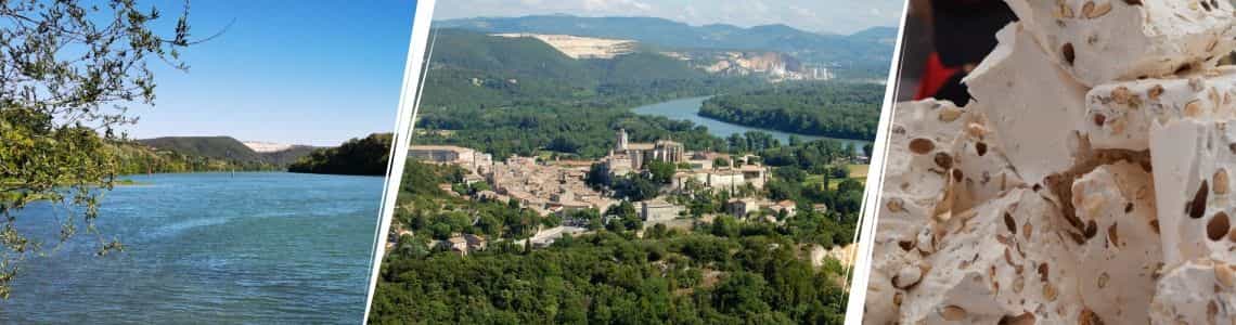 À 10 kilomètres au nord de Viviers vous pourrez vous arrêter à Montélimar où le nougat n’a plus de secret pour personne ! L’appellation “nougat de Montélimar” est réservée à des produits contenant au minimum 30% d’amandes et 25% de miel.